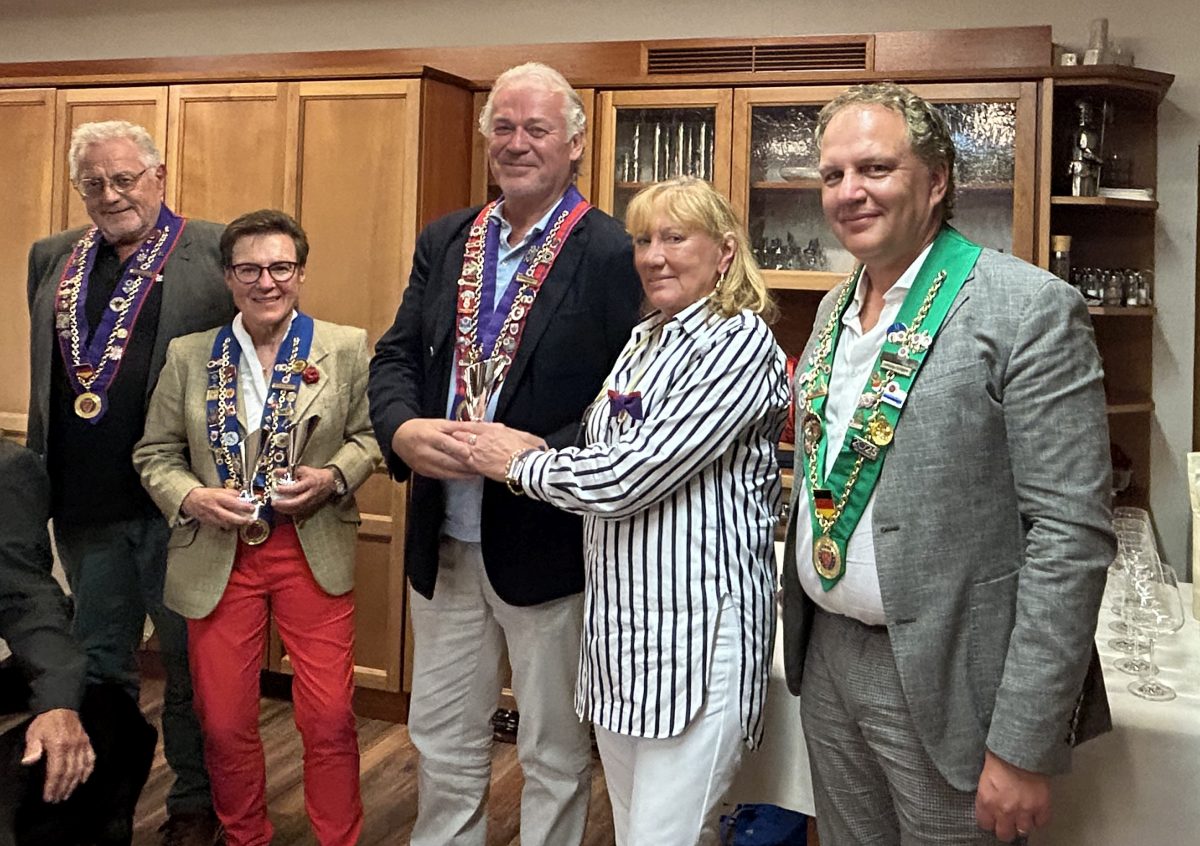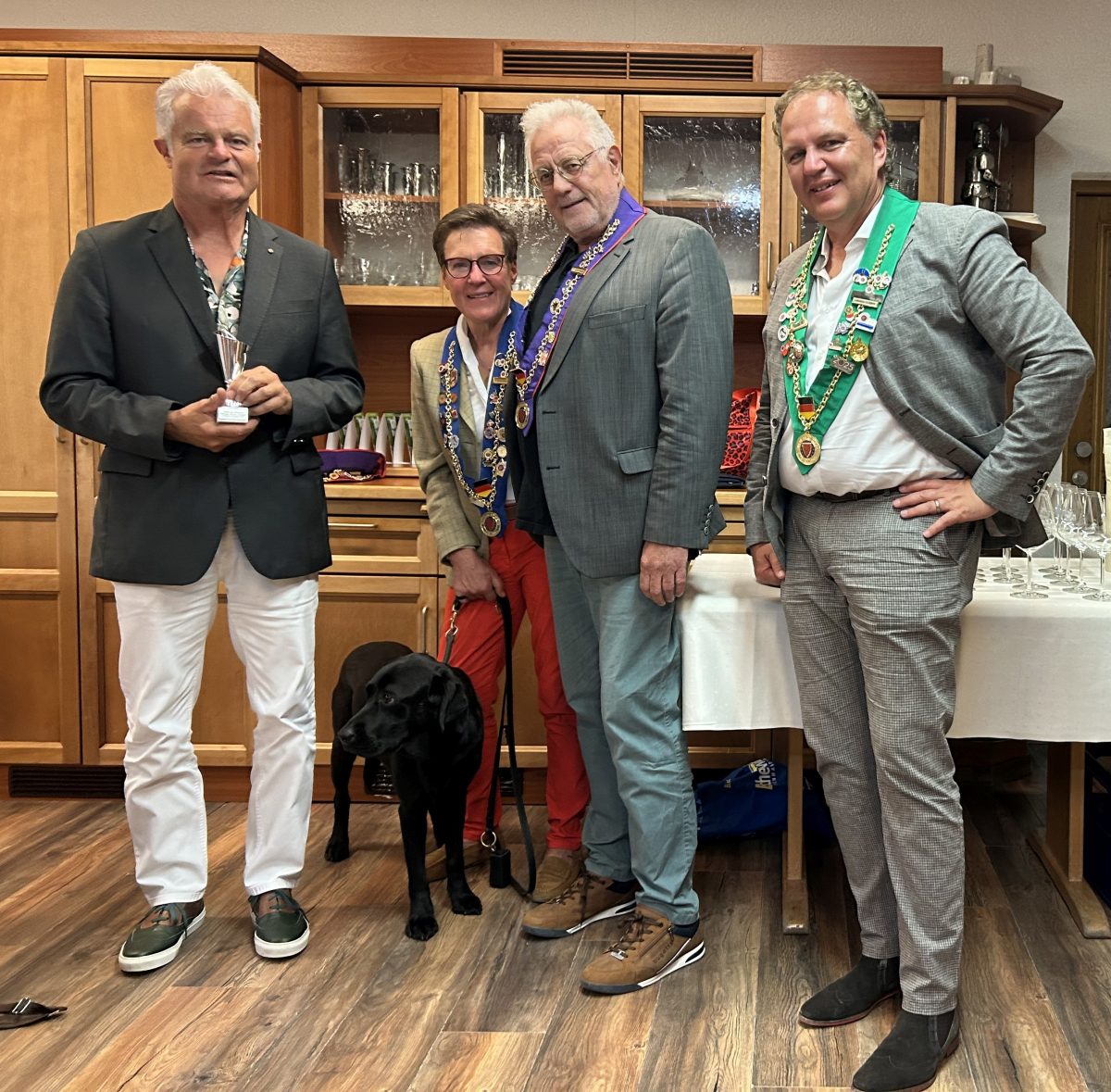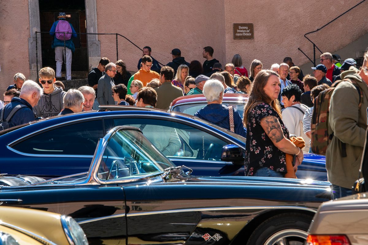 Natürlich durfte eine Würdigung des ältesten Fahrzeugs (i), der Crew mit der weitesten Anfahrt (ii) und der Besatzung mit dem stimmigsten Outfit (iii) nicht fehlen. Die Preise in Form kleiner Pokale gingen an: Peter Gräßl und Christian Böhm, Chevrolet Corvette, Baujahr 1959 (i) – Thomas Pirker und Dorothea Bergmeyer, Salzburg, Baillage Österreich, Mercedes Benz CLK 63 AMG (ii) – Dr. Wolf-Dietrich Nahr im Blaumann mit Hündin Lotti, Morris Minor Traveller (iii).
