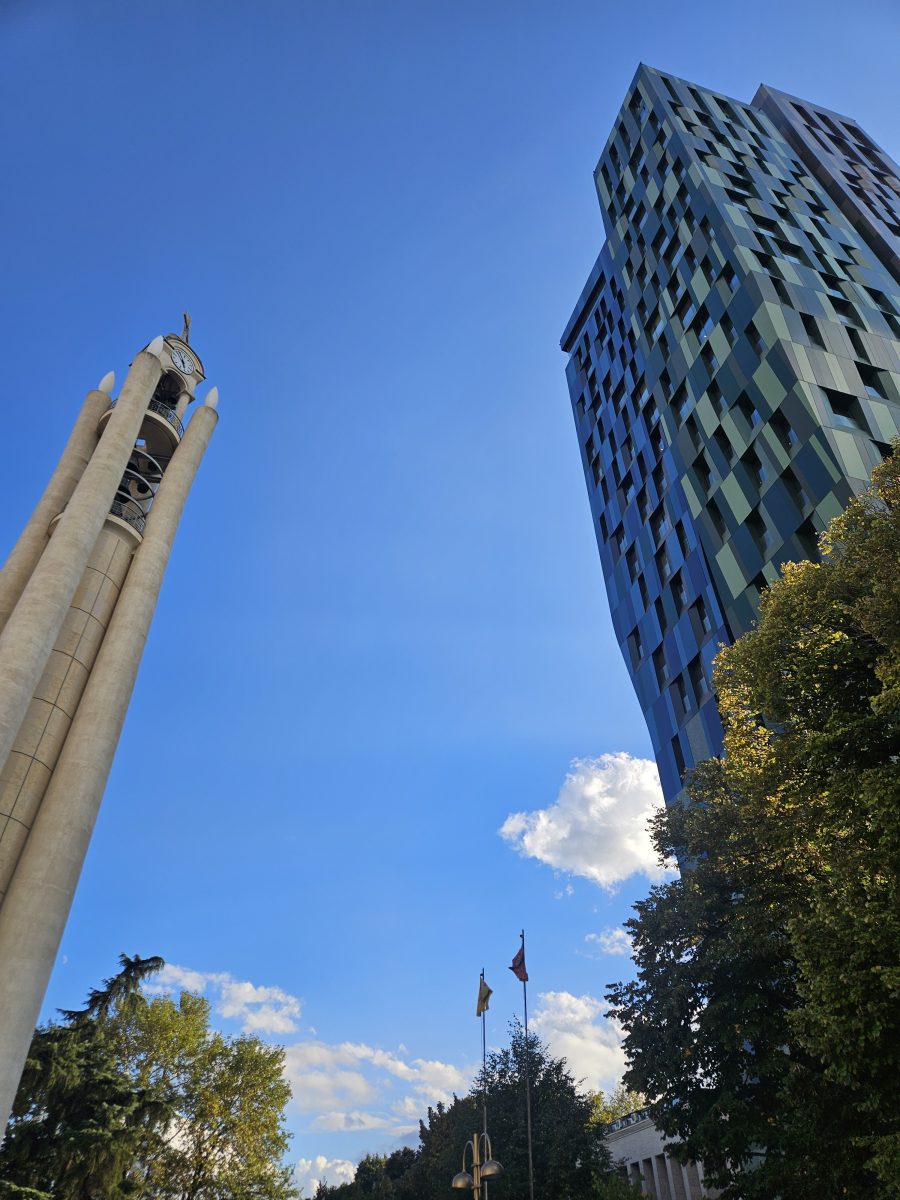 Ivan, unser montenegrinischer Reiseleiter, empfängt uns herzlich. Durch chaotischen Verkehr, Baustellen und bunte Straßenszenen geht es zum „Agro Tourismo Blerina“, wo uns duftende Kräuter, selbst gezogener Salat und kräftiger Wein erwarten. Zurück in der Stadt erleben wir Tirana: Plattenbauten neben Designfassaden, Moscheen, Glitzerkleider und Blumenkioske. Beim Stadtspaziergang lernen wir die wechselvolle Geschichte zwischen Rom, Osmanen, Sozialismus und Demokratie kennen. Der Skanderbergplatz leuchtet im Abendlicht – ein wildes Mosaik aus Alt und Neu.