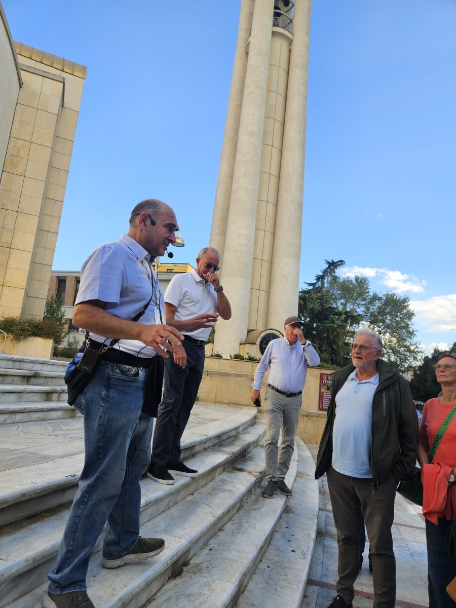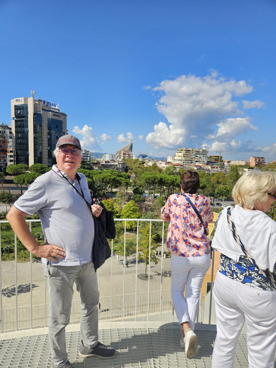 Ivan, unser montenegrinischer Reiseleiter, empfängt uns herzlich. Durch chaotischen Verkehr, Baustellen und bunte Straßenszenen geht es zum „Agro Tourismo Blerina“, wo uns duftende Kräuter, selbst gezogener Salat und kräftiger Wein erwarten. Zurück in der Stadt erleben wir Tirana: Plattenbauten neben Designfassaden, Moscheen, Glitzerkleider und Blumenkioske. Beim Stadtspaziergang lernen wir die wechselvolle Geschichte zwischen Rom, Osmanen, Sozialismus und Demokratie kennen. Der Skanderbergplatz leuchtet im Abendlicht – ein wildes Mosaik aus Alt und Neu.