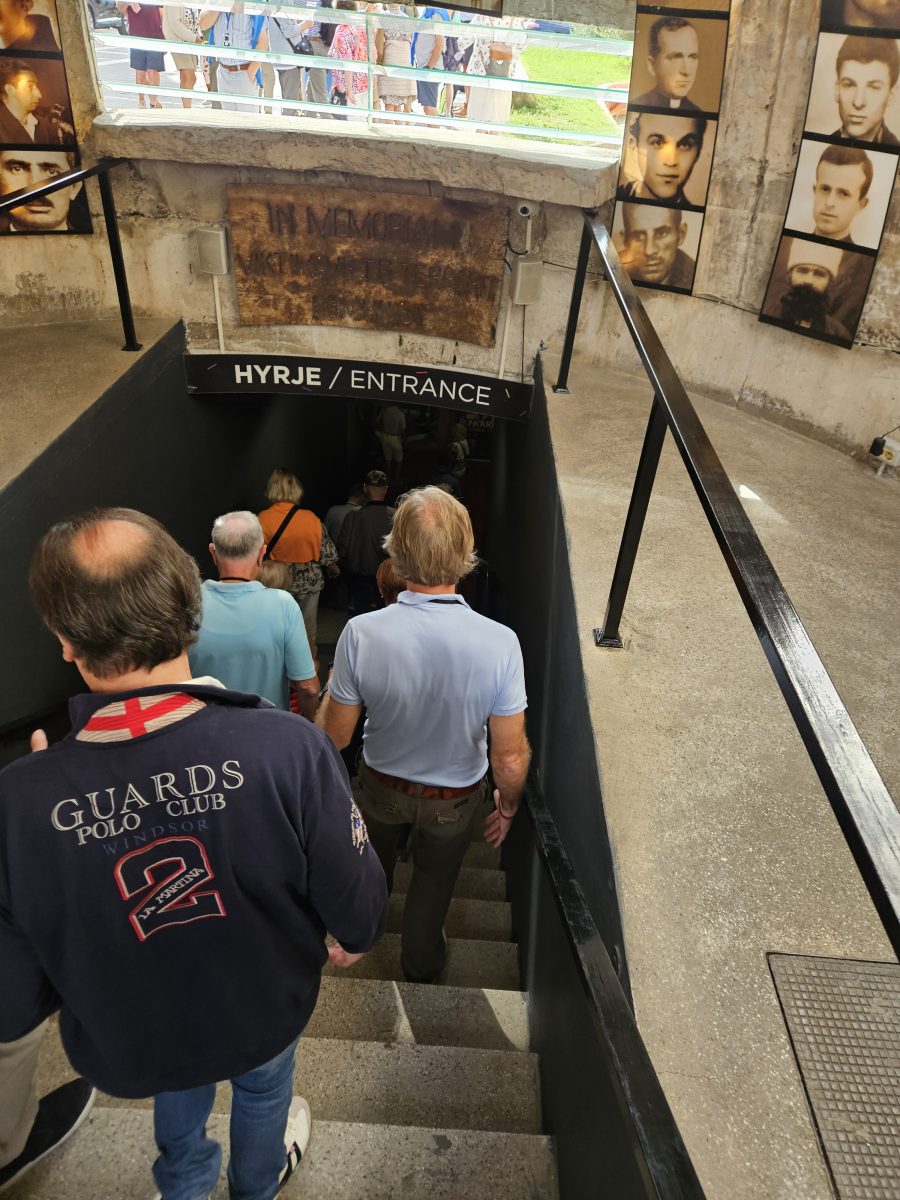 Weiter zum alten U-Boot-Bunker, wo uns Musiker in der Akustik des Tunnels überraschen – unvergesslich! Danach Mittag im „Adriatica“: Wolfsbarsch, Schokolade, Williamsbrand. In Perast bleibt Zeit zum Bummeln, Kaffee (mit Raki) und Aussicht genießen. Abends im „Conte“: Schinken, Käse, Fleischspieße, Mandeleis – und wieder: „Raki hilft immer.“ Perast glitzert im Wind.