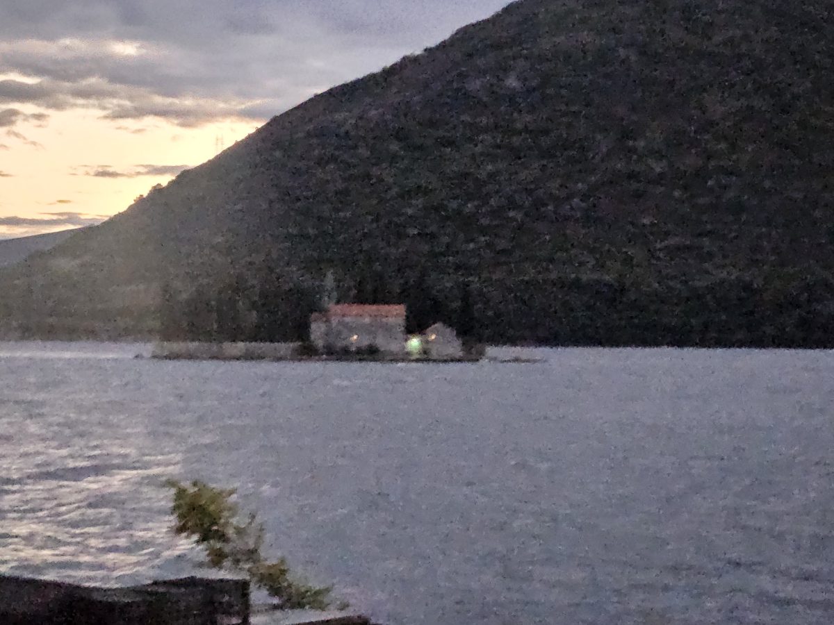 Abends Ankunft in Perast an der Bucht von Kotor. Wind pfeift, Strom fällt aus, das Dinner trotzdem wunderbar – ein Tag voller Abenteuer endet stilvoll.